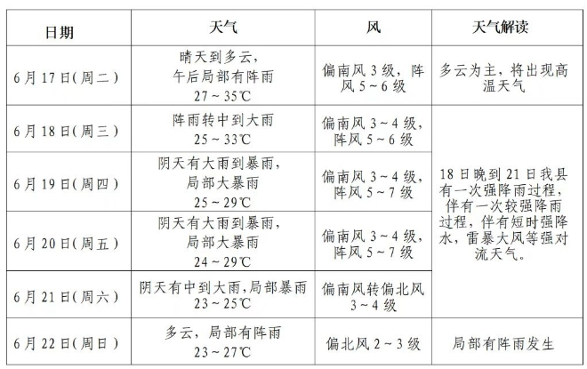 21日中到大雨,局部暴雨