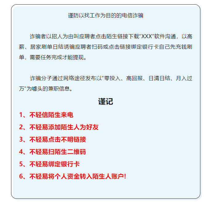 不轻信高薪招聘信息